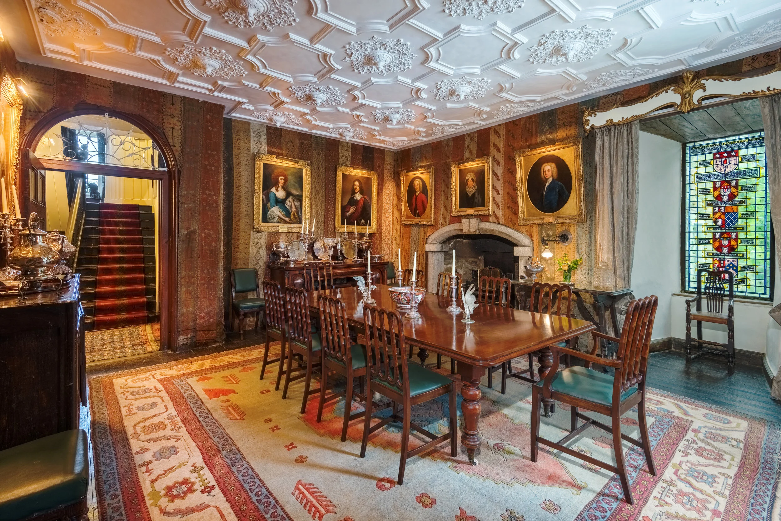 A later addition to the castle, the Tapestry Room boasts beautiful Aubusson French tapestries, ornate carpets & fabulous portraits of ancestors from years gone by.